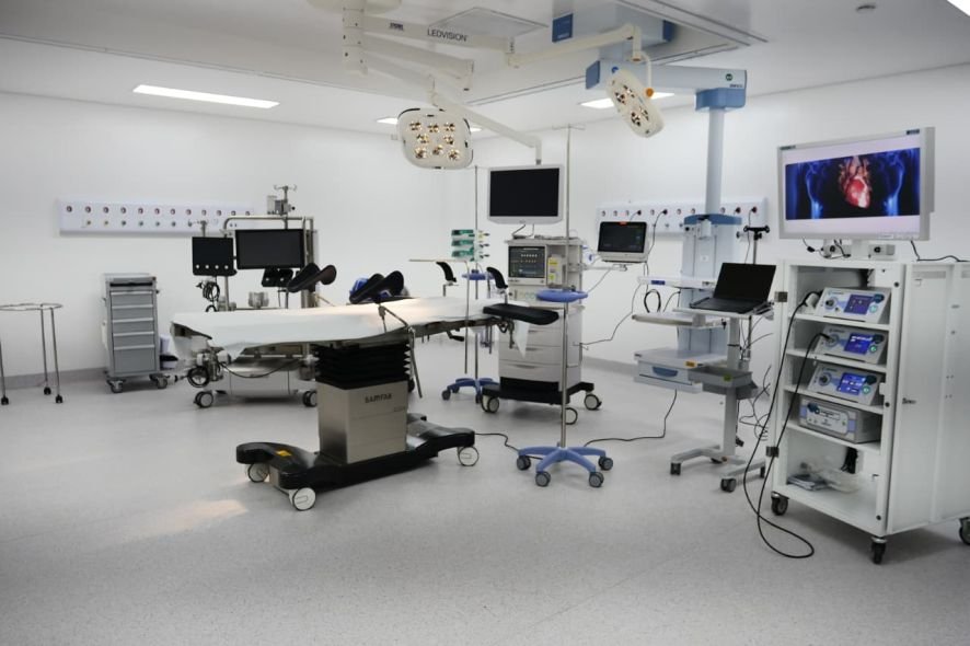 A estrutura hospitalar também dispõe de dez salas cirúrgicas, preparadas inclusive para a realização de cirurgias robóticas, além de duas salas de hemodinâmica voltadas a procedimentos minimamente invasivos, como cateterismo cardíaco e angioplastia.