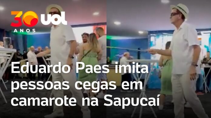 Vídeos Veja Vídeo – Eduardo Paes imita pessoas com deficiência visual em camarote na Sapucaí; veja Por suporte@criativapremium.com.br - 19 de fevereiro de 2026 0 47 FacebookTwitterPinterestWhatsApp O prefeito do Rio de Janeiro, Eduardo Paes (PSD), foi flagrado imitando pessoas com deficiência visual em camarote da Marquês de Sapucaí, no domingo, 15, durante o desfile de carnaval do Rio.