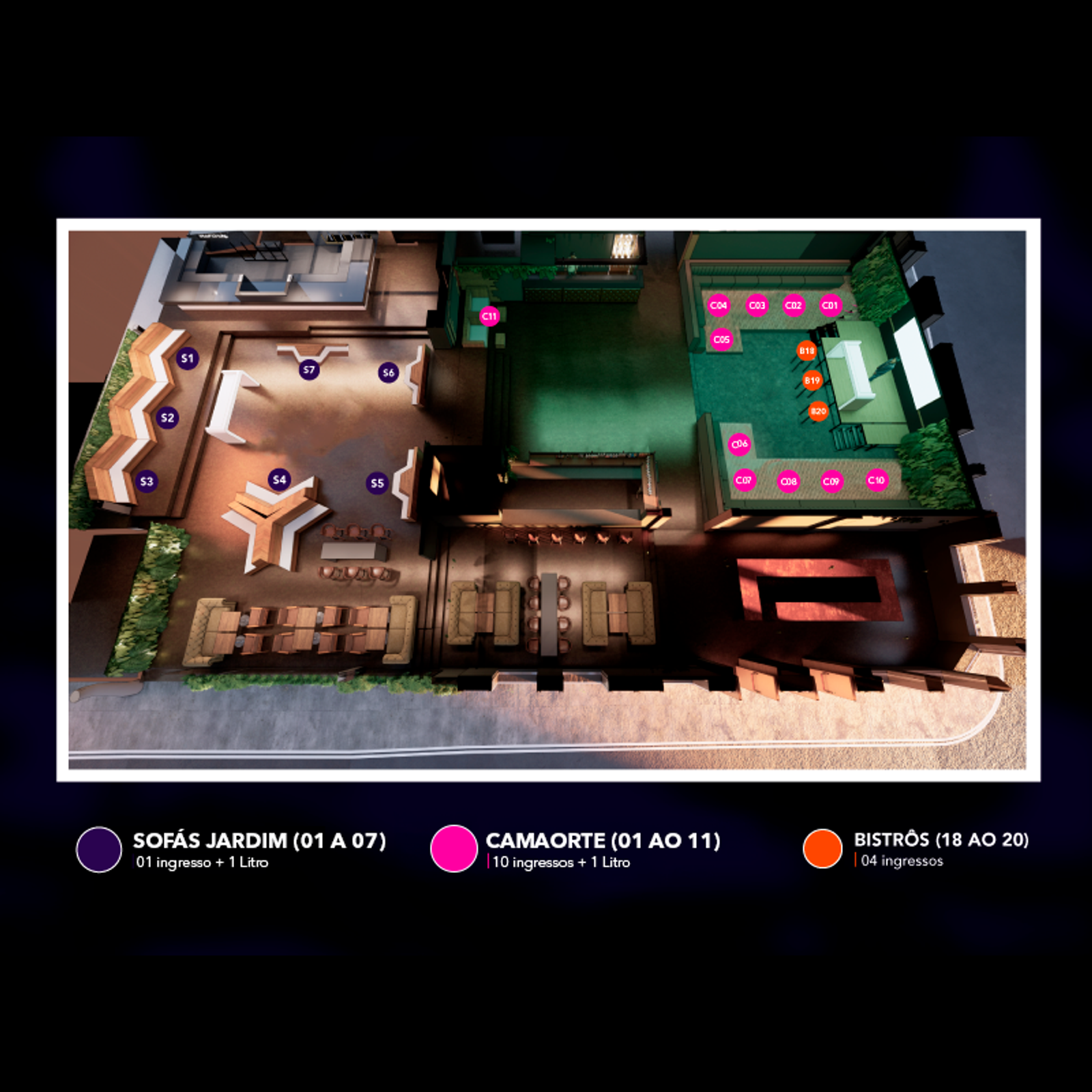 CAMAROTE dá direito a 10 INGRESSO + 01 LITRO (Gin Tanqueray / Vodka Belvedere / Wisky Old par)